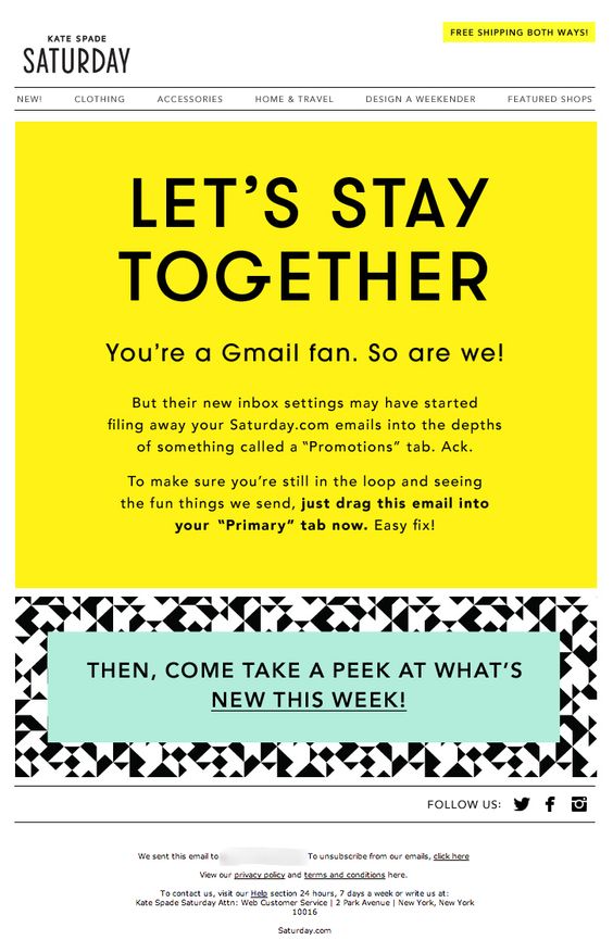 A very open and friendly lead activation email from Kate Spade. With few graphics, but a smart and informative message, they do their best to stay in touch with their clients.