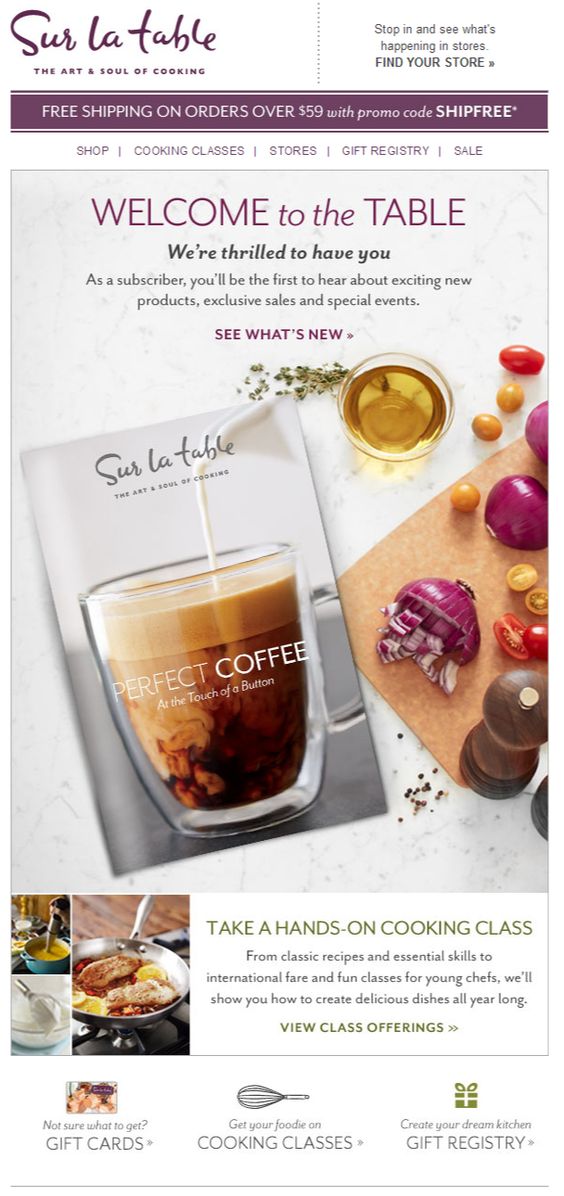Sur la table welcomes you with a visually appealing transactional email and the promise to be the first to hear about new products, sales and special events.