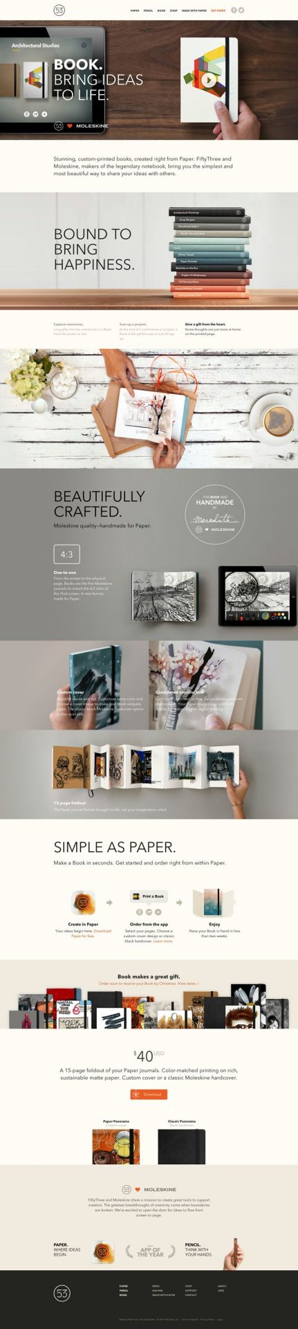 FiftyThree’s sells custom printed books and covers and their newsletter design uses warm yellow and grey colors. This in turn helps all the books and other products stand out and it also has a bright call to action to capture attention.