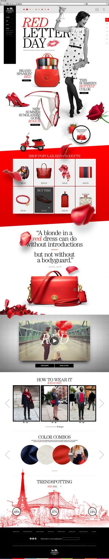 For Red Letter Day, Coach styled their email newsletter according to that particular color scheme, of course. They have showcased some of their products in red on white and grey backgrounds, which really makes them stand out. They’ve also added some rose petals all over the template which makes it look like they’re falling, giving the newsletter a very creative look.