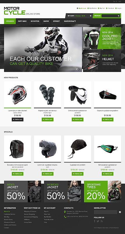 This newsletter design for Motor Cycle is also very clean and clear. It uses the logo’s main colors as it’s scheme. The use of the green really makes the content and call to actions stand out and give it a fresh look and feel, which attracts the subscriber’s eye.