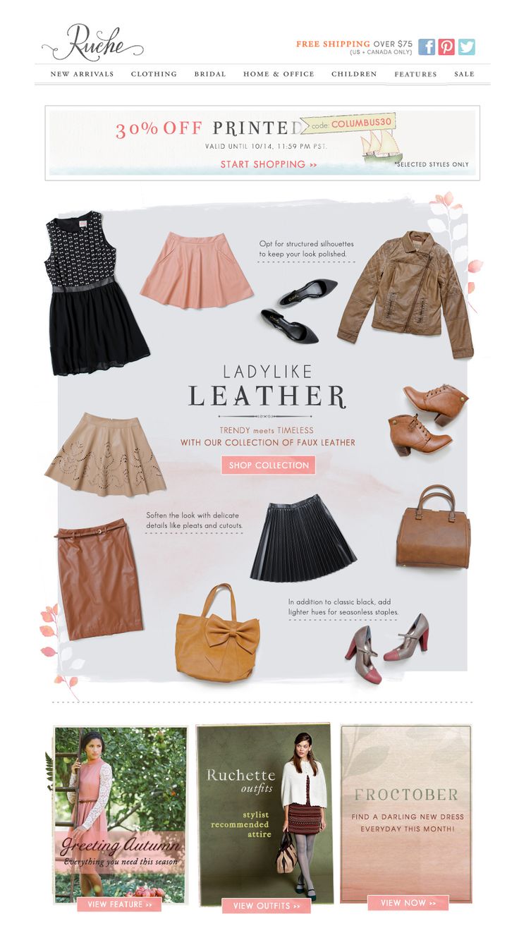 Ruche’s newsletter design is very elegant and they have showcased some of their collection such as jackets tank tops, dresses, handbags, shoes, etc front and center. It shows just enough to get you interested in clicking that Shop Collection button to find out more about it on their website.