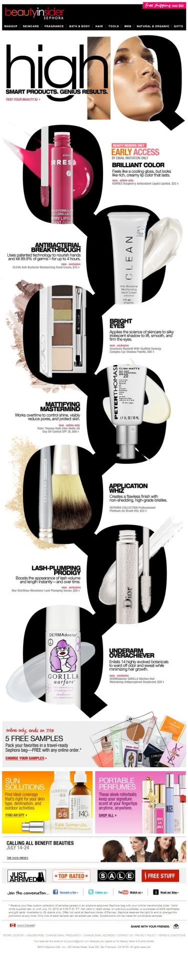 What’s interesting about this newsletter is the use of typography. From the headline “High IQ” which contains an image of a model inside of the letter Q, to all the product placeholders that are also in the form of the letter Q. This certainly makes the newsletter quite memorable.