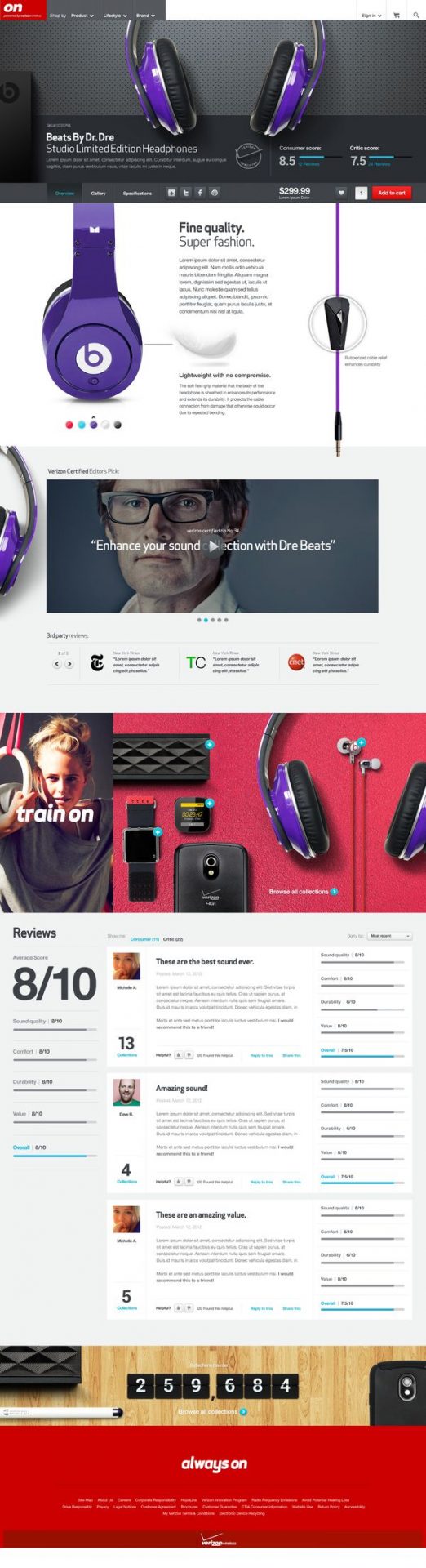 Verizon has added in their newsletter, not only the products they are selling, but also a table of reviews from satisfied customers. They include useful information about the product specifications such as sound quality, comfort, durability, value and an overall rating.