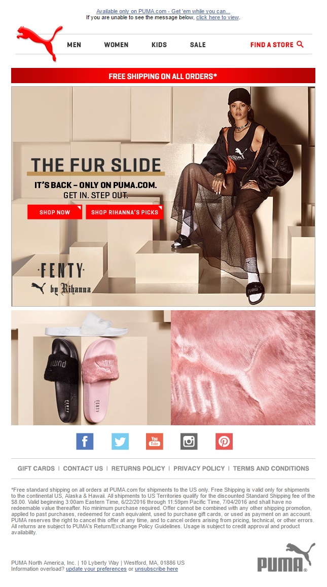 Puma are lucky to have such a huge pop star on their side. It is enough to open the email and you are going to stick with it for at least few more seconds, trying to figure out what is it that Rihanna offers to you this time. These fluffy flip-flips may not be the most stylish product Puma has offered, but it is the power of the Caribbean star that is going to make them fly off the shelves.